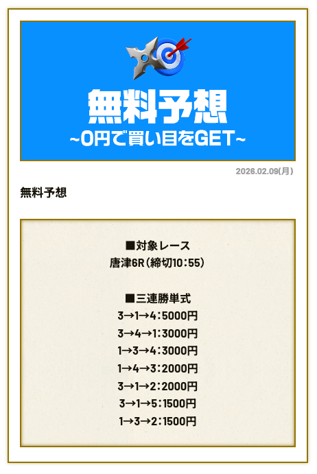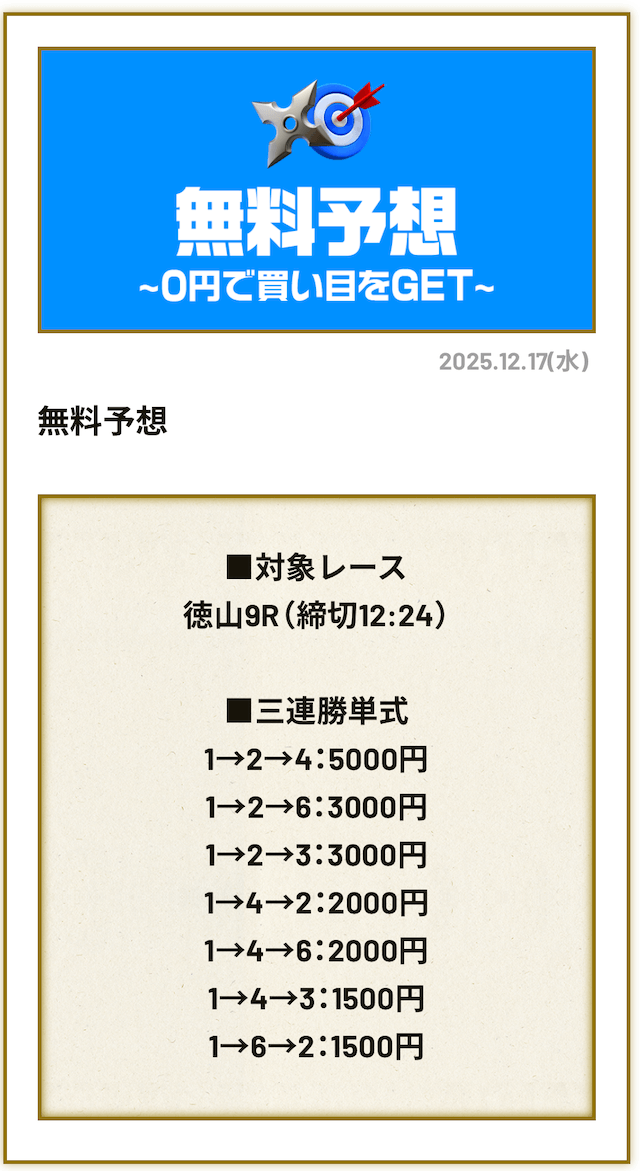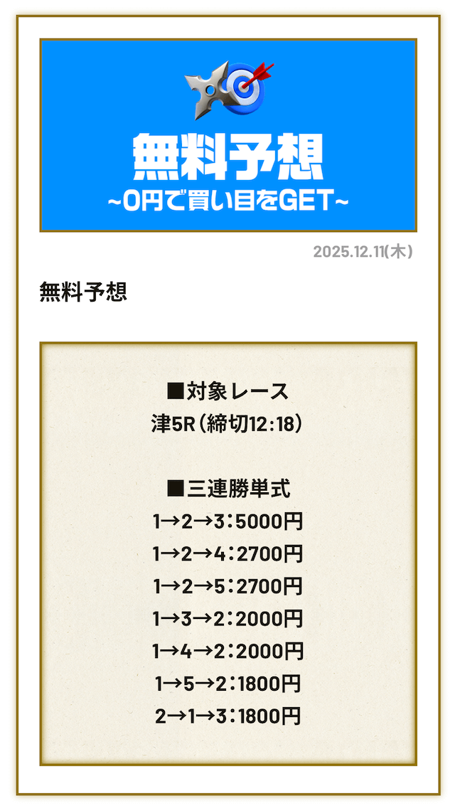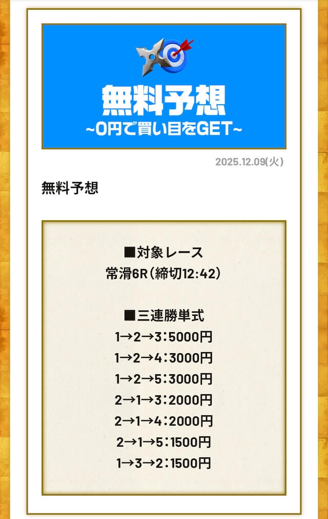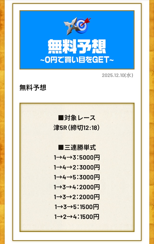 ★★★★★ 5.02025/10/08久しぶりにここまで精度高い予想サイトに出会ったかも!