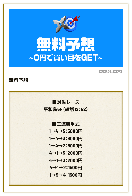 競艇ニンジャの無料予想は当たらない?ムサシが自腹で徹底検証!