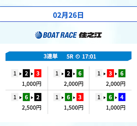 ’26/02/05 的中無料予想で36,300円獲得