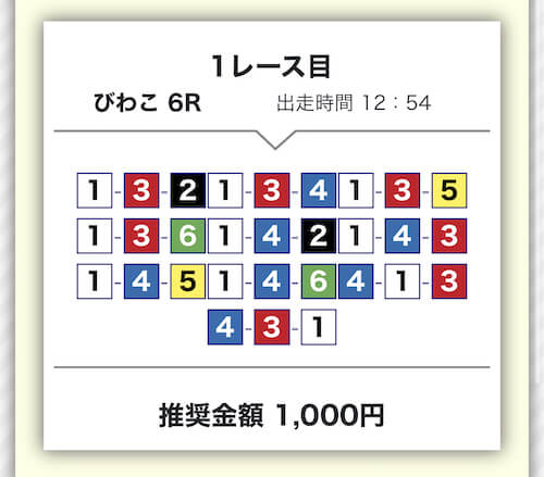 買い目点数10点だから当たってもあんまり旨味ないのかなって思ってたんだけど、レース選びが凄い上手いから結構稼げるんだよな〜。競艇投資って胡散臭いイメージあったけど、ボートタイム使ってから印象変わったわ。