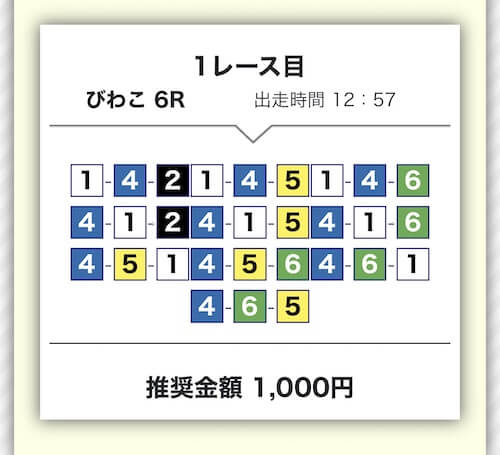 競艇はギャンブルだから100%の的中はあり得ない。優良の競艇予想サイトですら、的中率90%ぐらいが限界でしょう。登録してから5戦、舟券は買わずに予想の結果だけ追ってましたが、的中率は80%で回収率は悪くなかったです。そこで僕は欲張って有料予想から参加しましたが、2レースコロガシでまさかの2レース目不的中で全てが水の泡。マジでタイミング悪かったです。