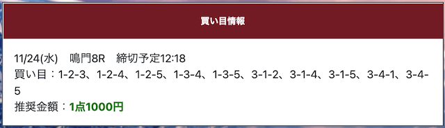 ボートって意外と当たらないものと思ってたけど、専門の情報使えばこんなにも当たるもんなんですね。推奨金額?決められた金額よりも下げて買ってしまったので儲けは少なかったですけど、当たる事がすごいと思える。次からは言われた金額で買っていこうと考えています。