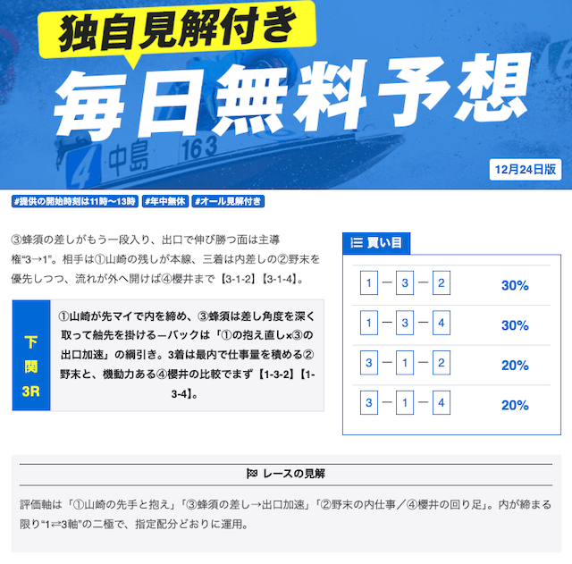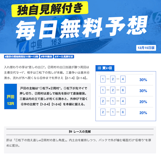 競艇予想サイトの中でも歴が長く、実績があるのでぜひ参加してみてください。
