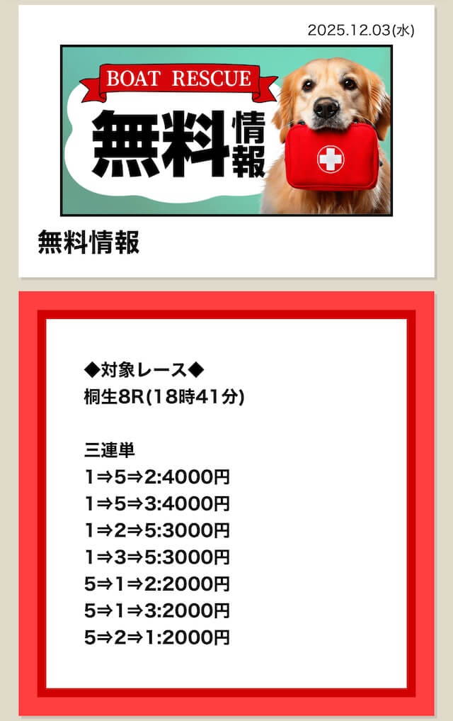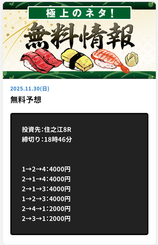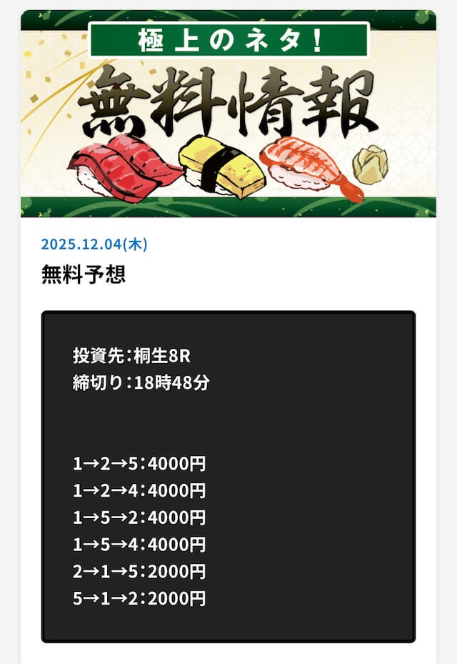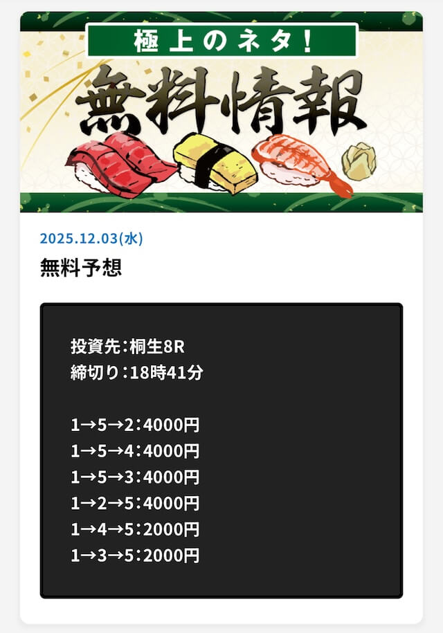 | 無料予想の提供数 | 毎日(1日2レース) |