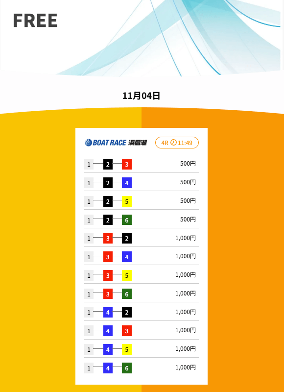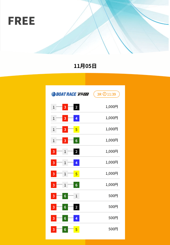 競艇バーニングは無料予想の公開数が4レースとかなり多いから、自分の都合に合わせて参加しやすいよ!