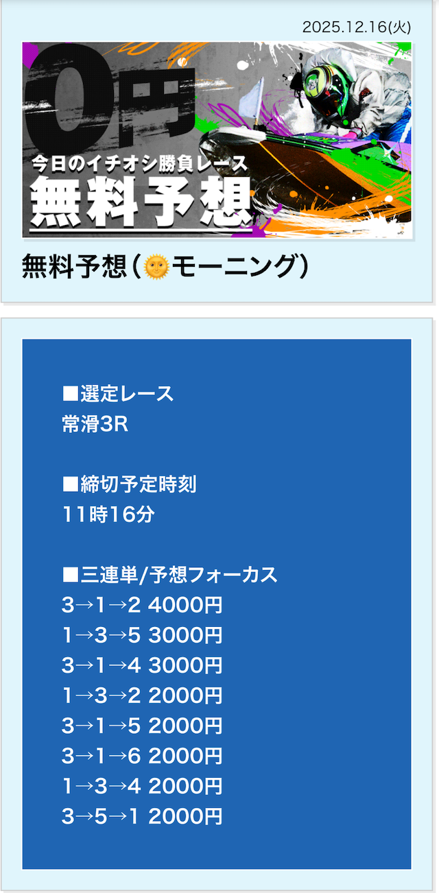 そのため、好ましいタイミングで予想が使えるかどうかもよく当たる無料競艇予想を選ぶ上で欠かせません。