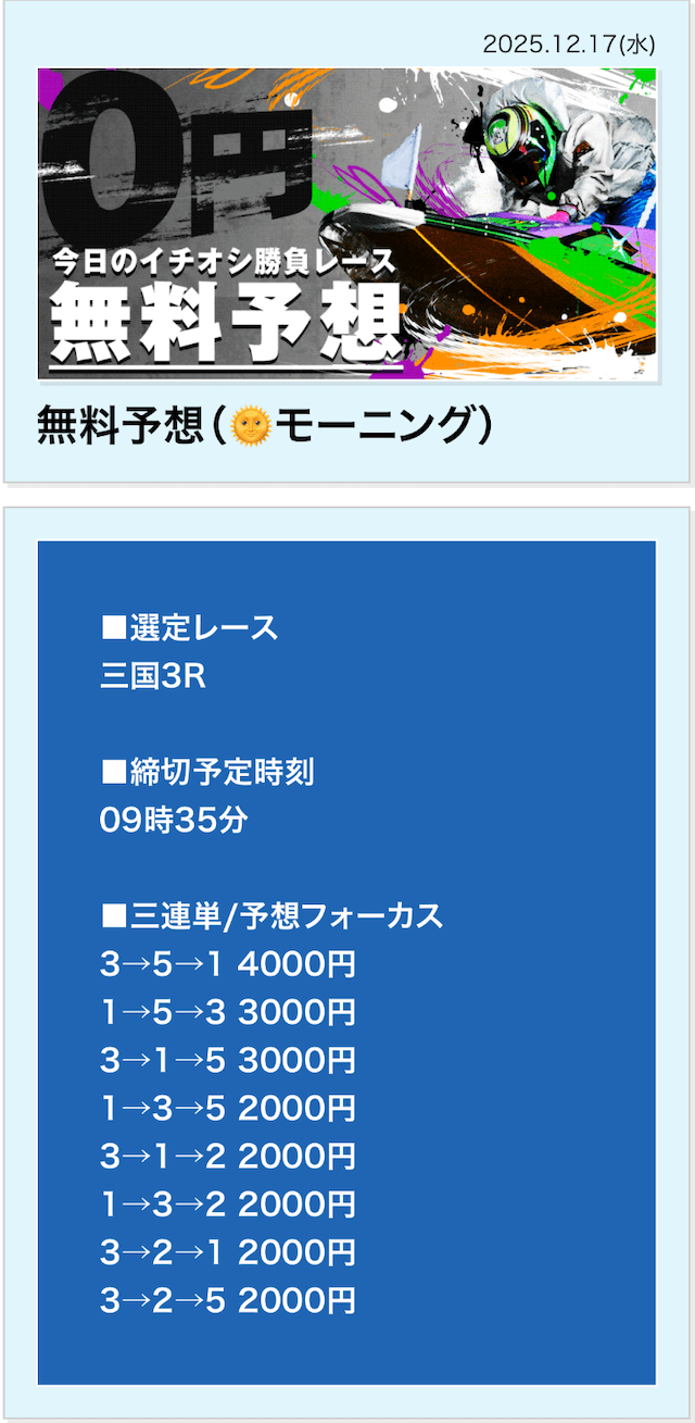 競艇場のレース傾向を度外視した、デタラメな無料予想を提供している可能性が高いと判断できます。