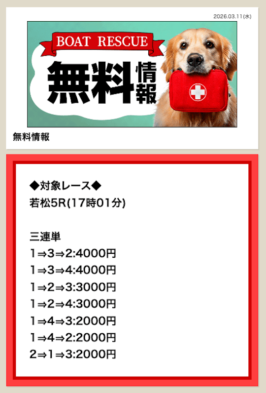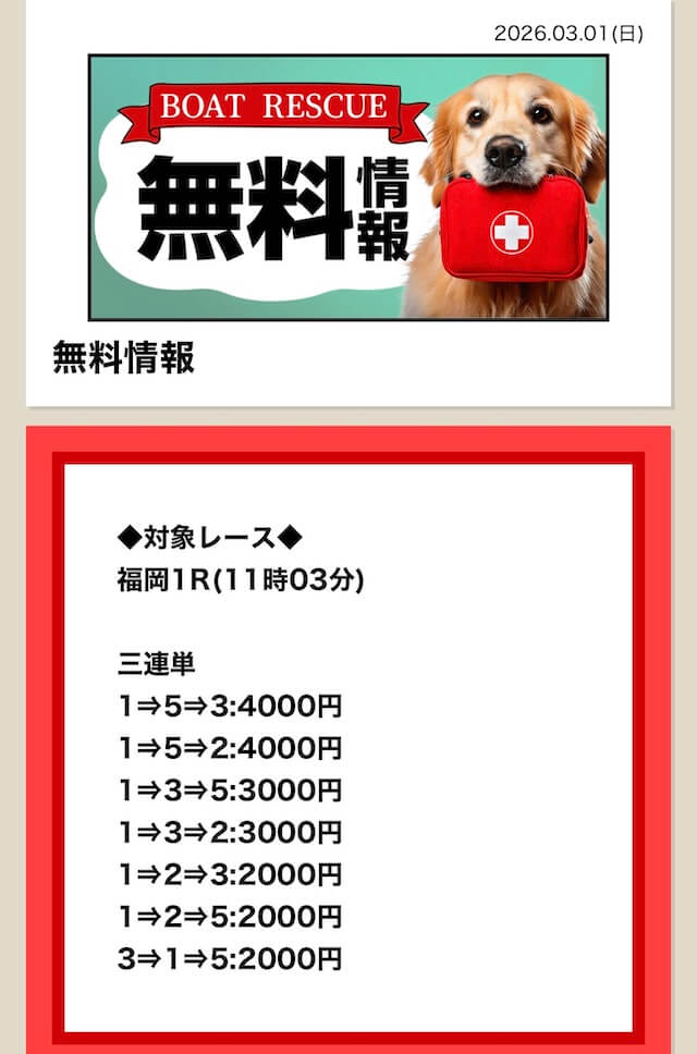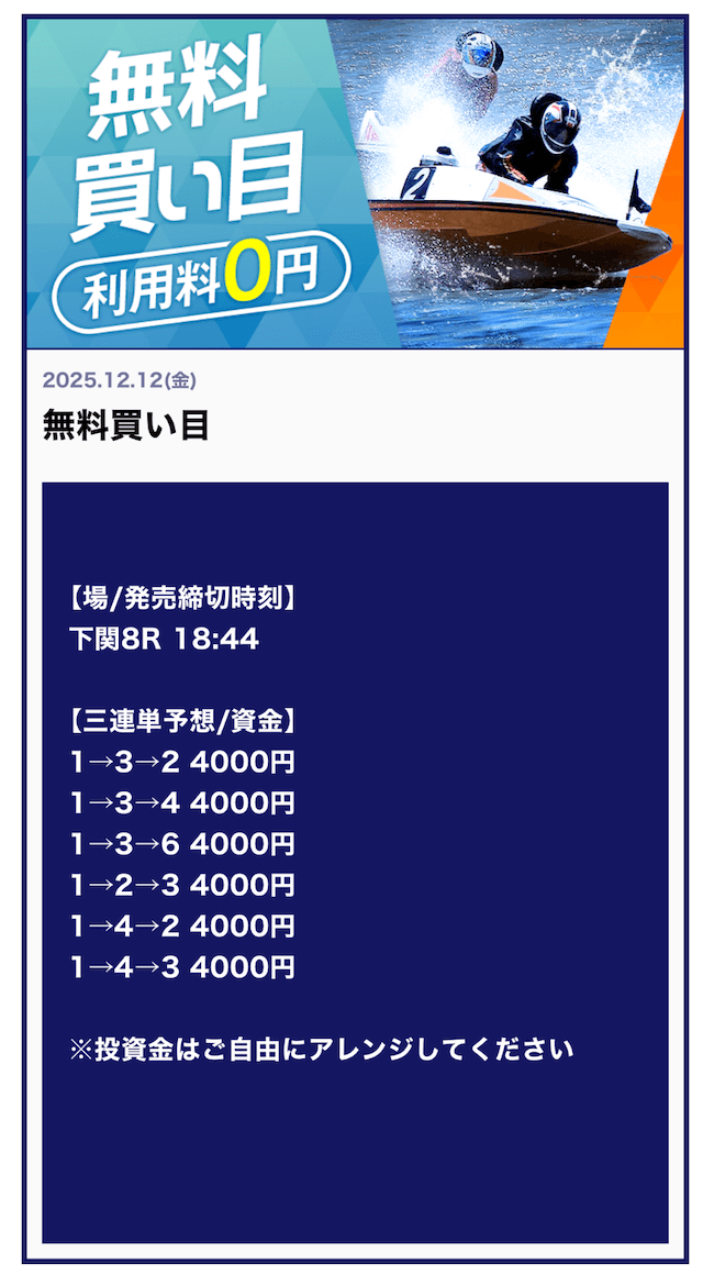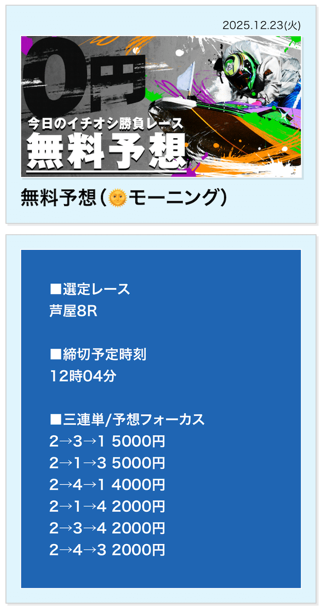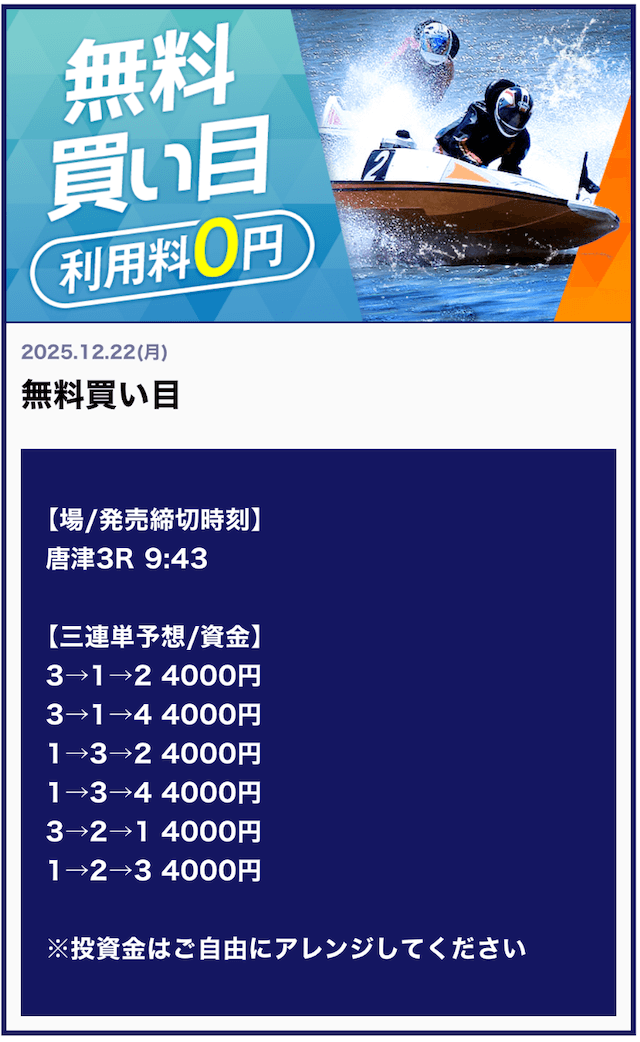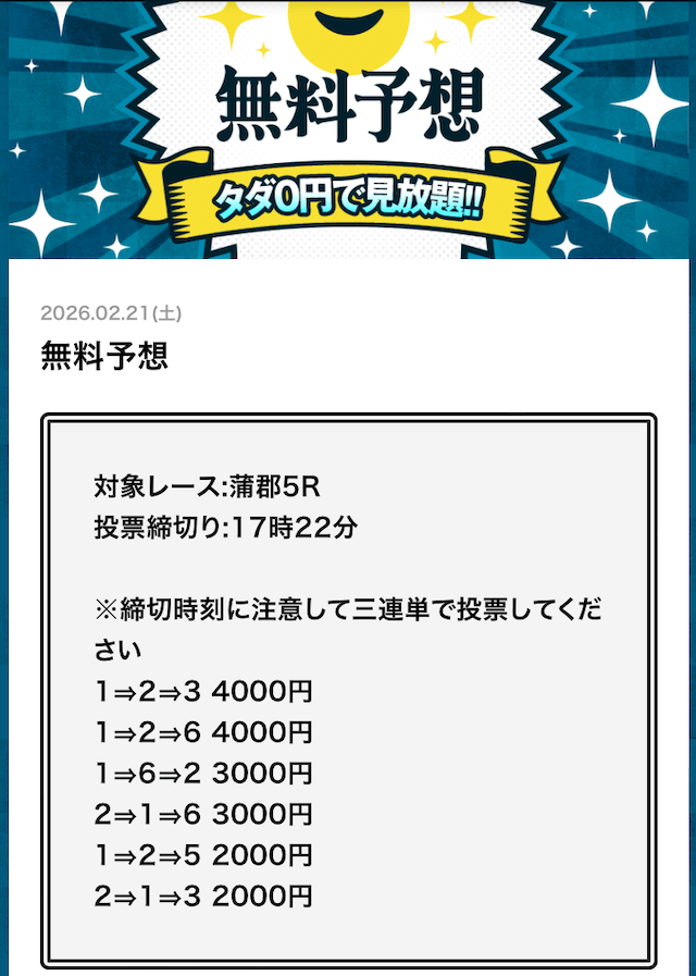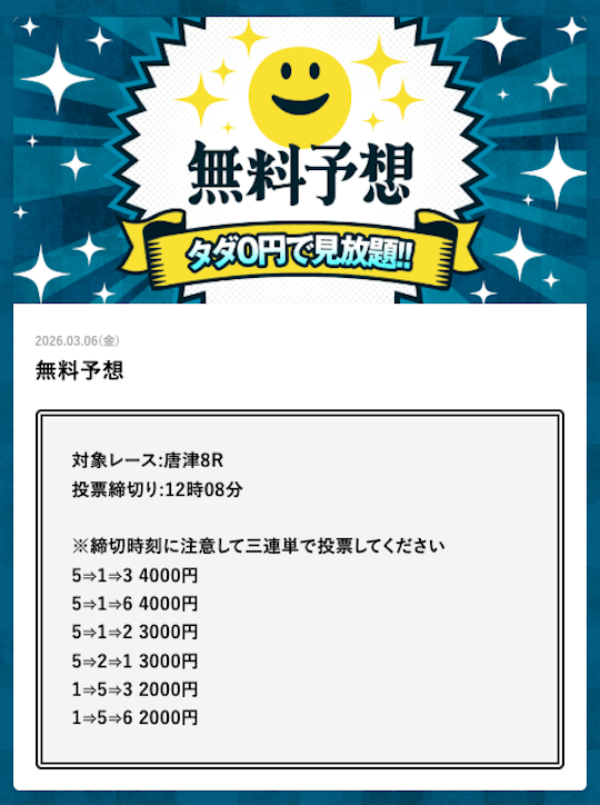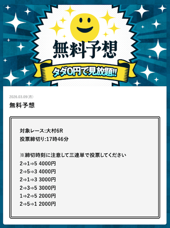 | 無料予想の提供数 | 毎日(1日2レース) |