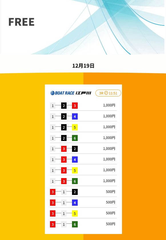 - Q6:よく当たる無料競艇予想を利用するメリットは?A:最大のメリットは、情報料にお金をかけずに競艇で稼げるようになる点です。競艇知識や経験が一切なくても買い目に丸乗りするだけで安定収支が見込めるでしょう。