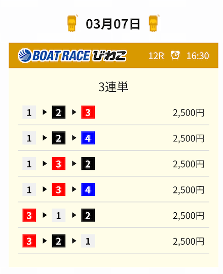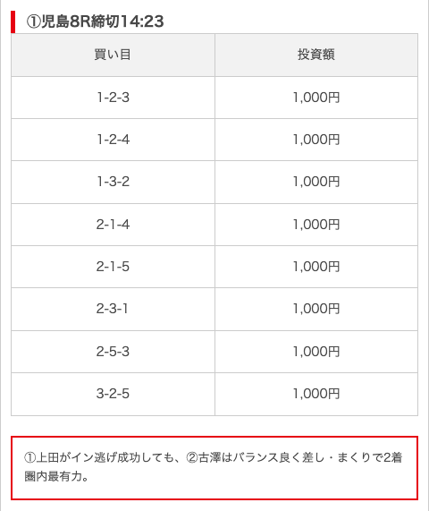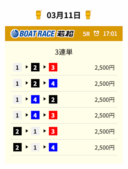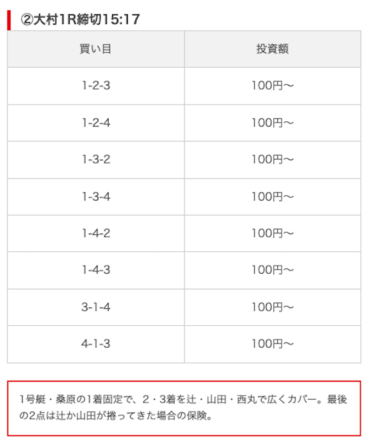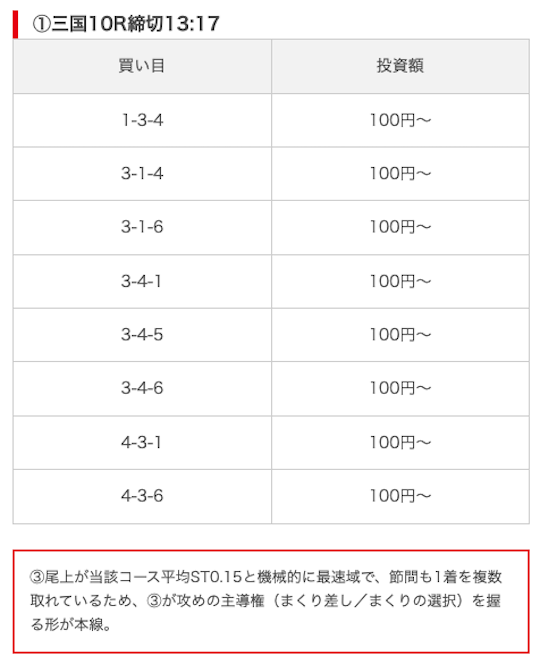 | 買い目点数 | 6点(3連単) |
