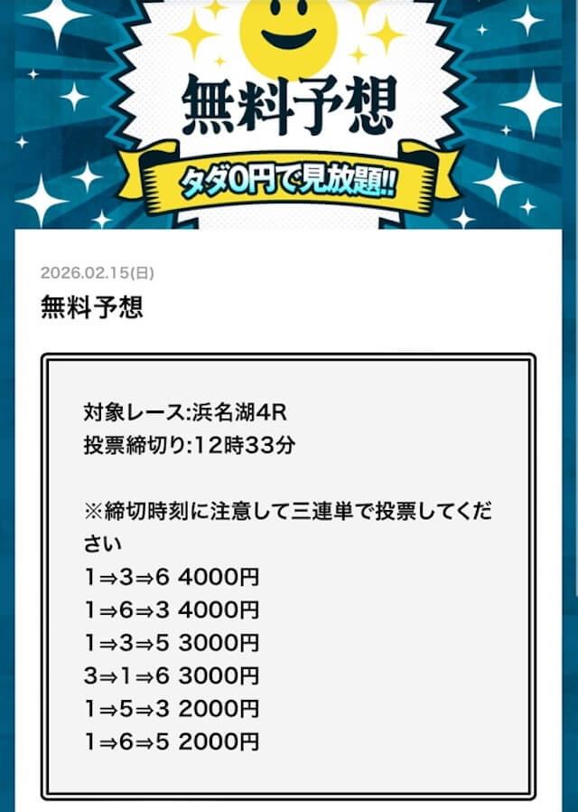 | 無料予想の公開時間 | 09:15/15:15 |