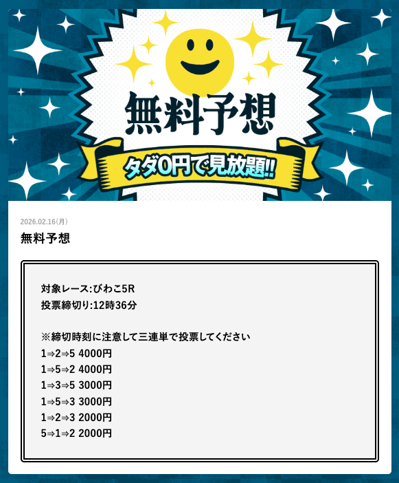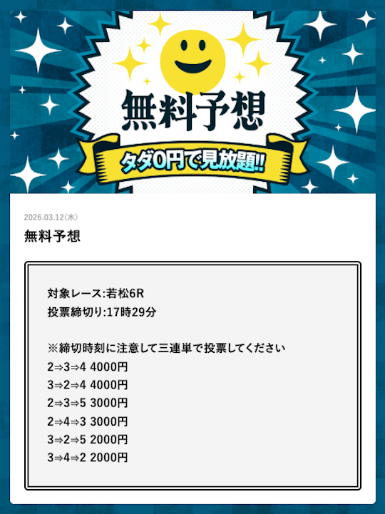 - 1日12レース無料公開!