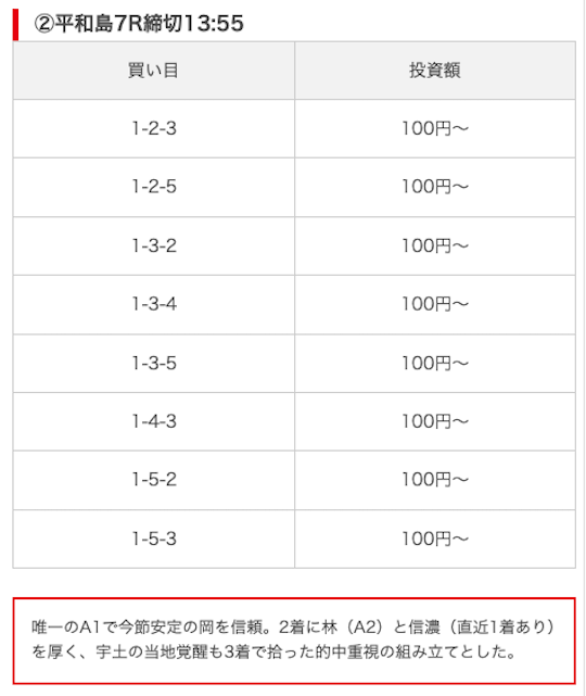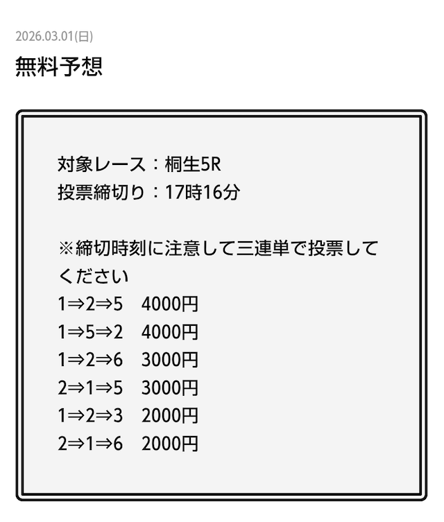公開された買い目をチェックすることで、“確度の高い無料予想”を提供しているのか否かを判断することができます。
