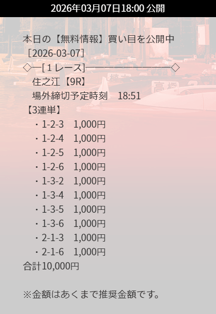 ’25/03/12 的中無料予想で18,000円の払い戻しを獲得