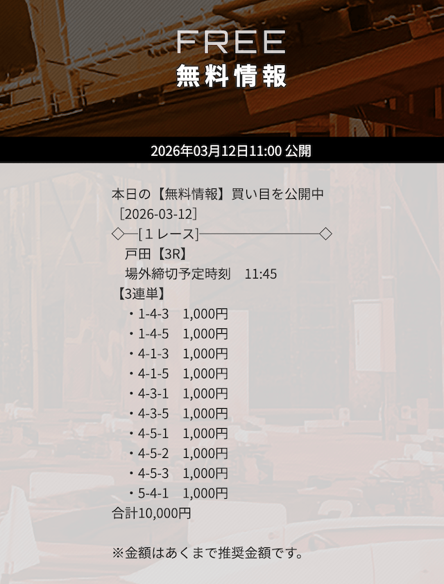 ’26/03/04 的中無料予想で12,200円の払い戻しを獲得
