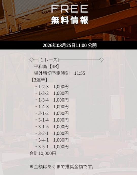 ’25/03/12 的中無料予想で18,000円の払い戻しを獲得