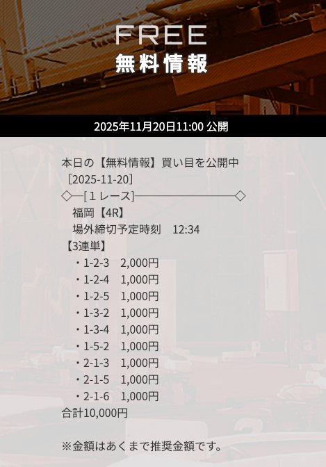 ’25/11/20 的中無料予想で18,900円の払い戻しを獲得