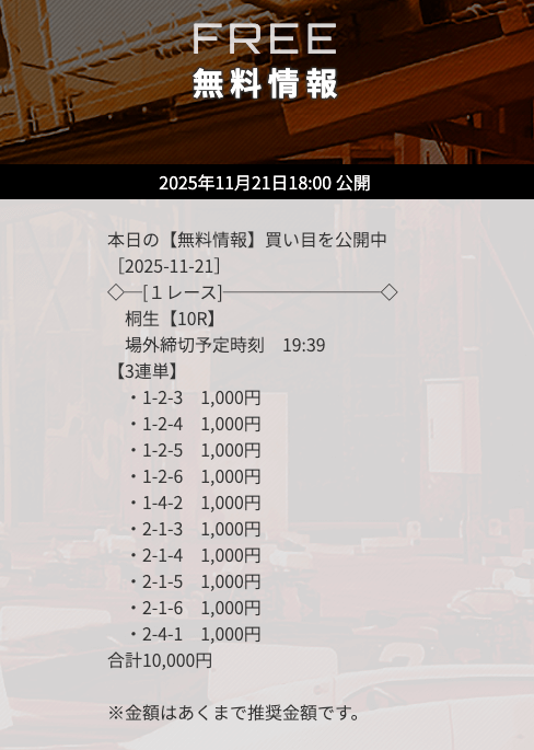 ’25/11/26 的中無料予想で21,300円の払い戻しを獲得