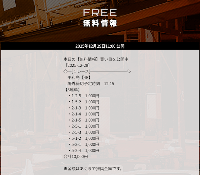 ’25/10/28 的中無料予想で10,000円の払い戻しを獲得