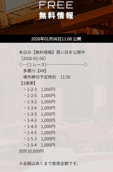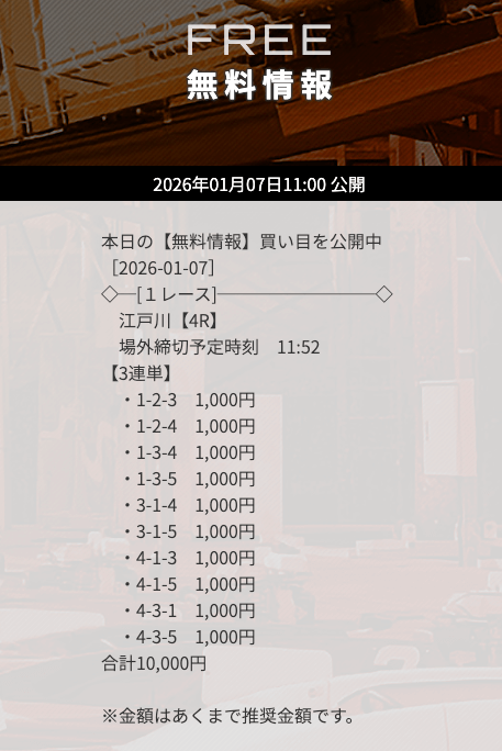 ’26/01/07 的中無料予想で17,200円の払い戻しを獲得