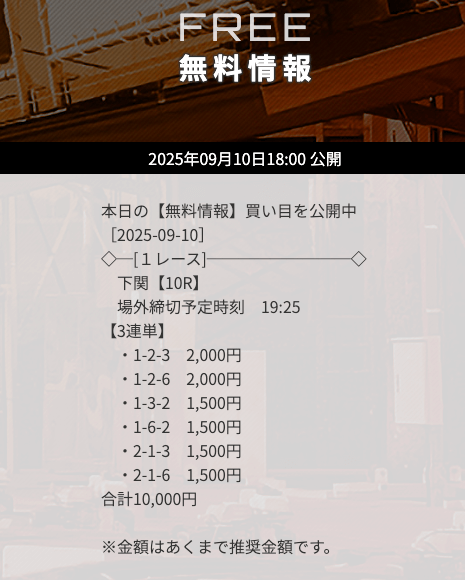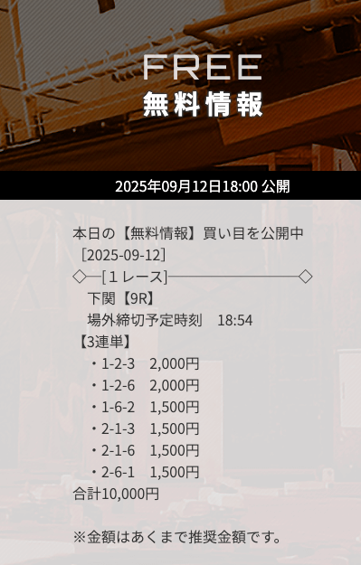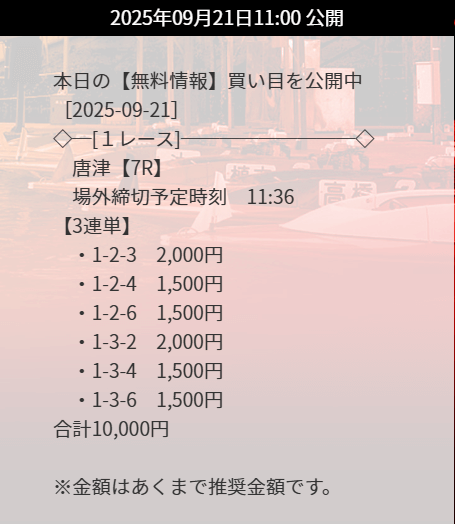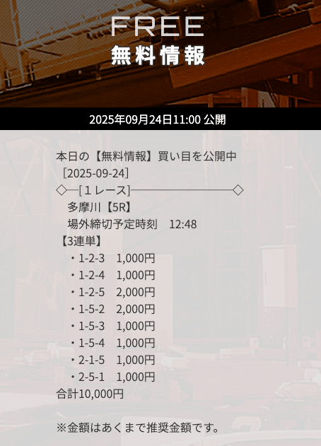 ’25/09/02 的中無料予想で19,000円の払い戻しを獲得
