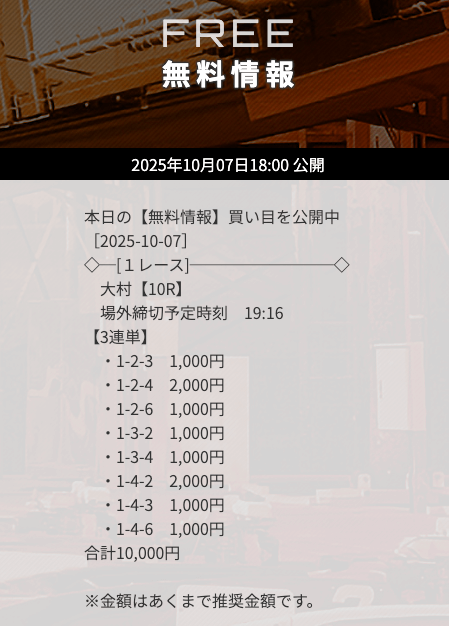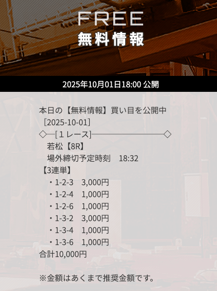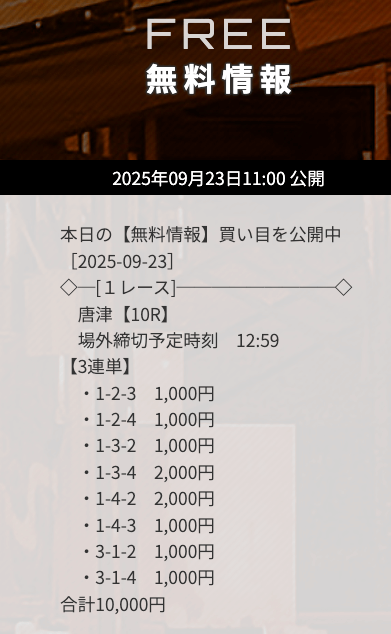 ’25/10/01 的中無料予想で10,800円の払い戻しを獲得