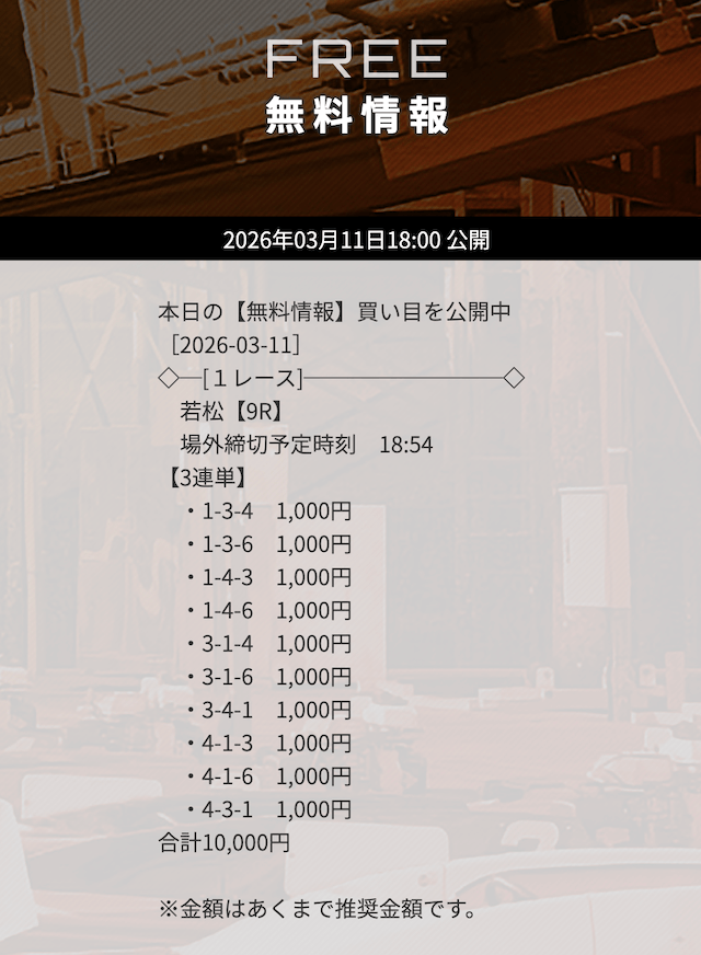 ’26/03/11 的中無料予想で11,200円の払い戻しを獲得