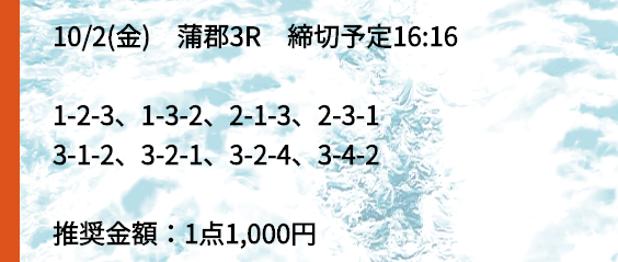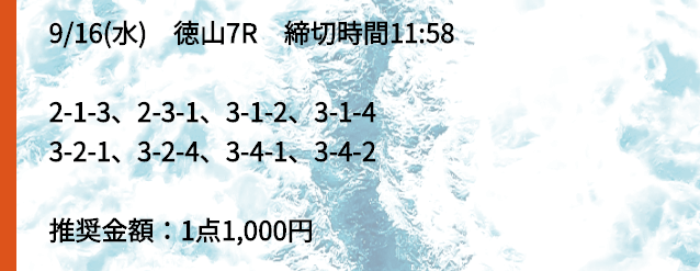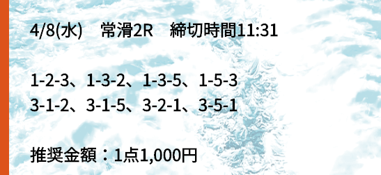 人気の買い目を押さえつつワンチャン狙える組み合わせなので、展開次第では払い戻しにも期待できます。