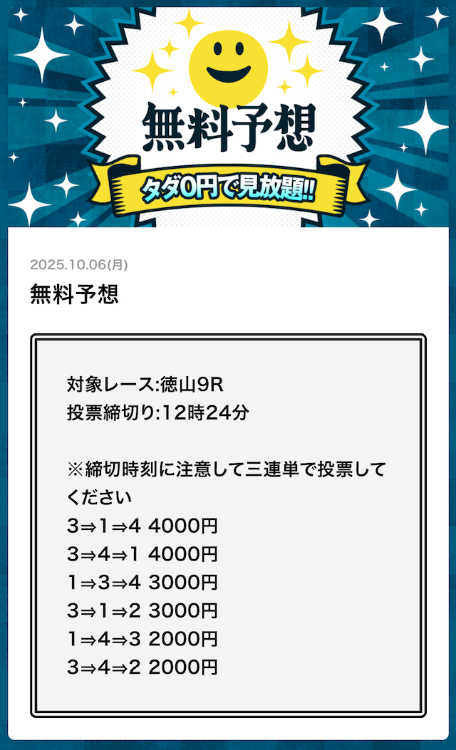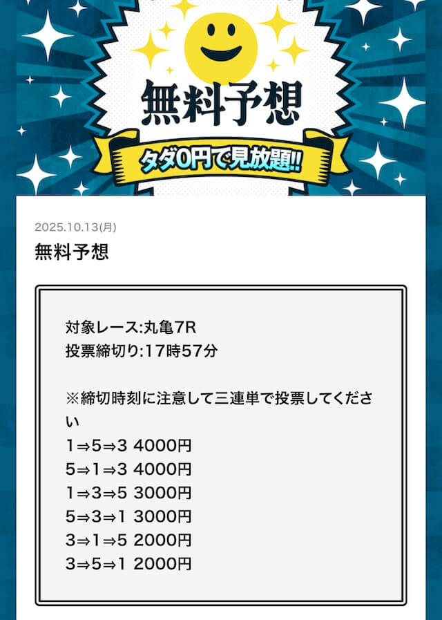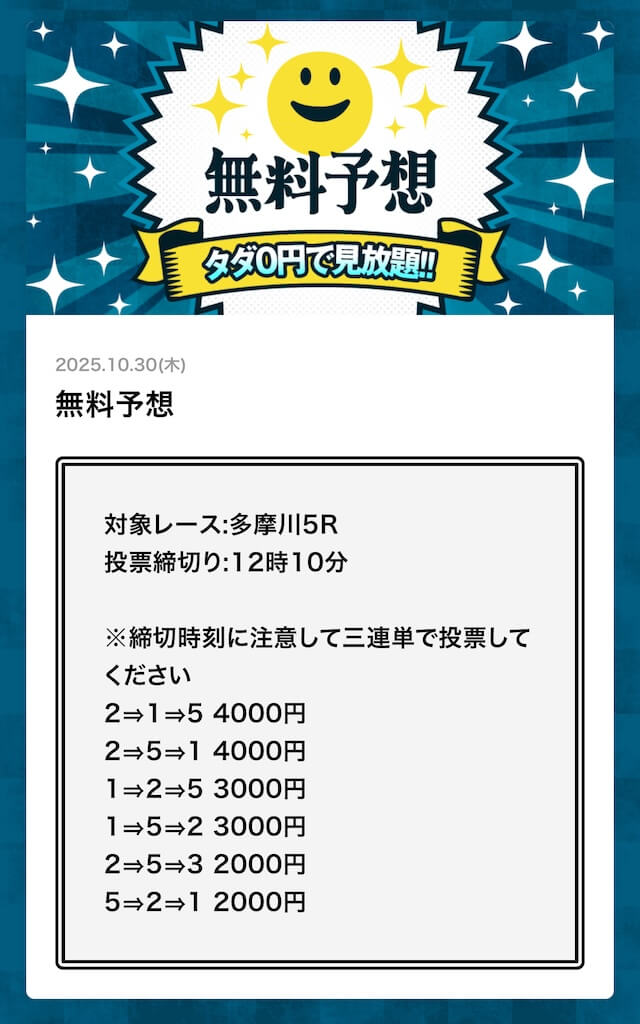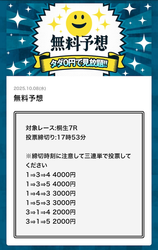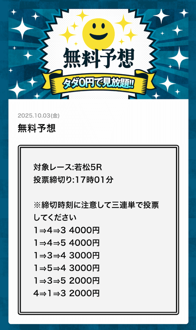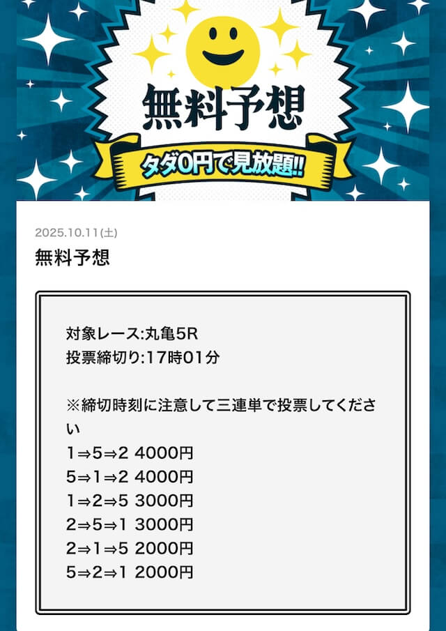 無料予想でこれだけ稼げるなら文句なしで評価5です! - 2025/10/08