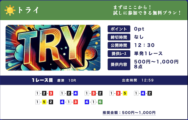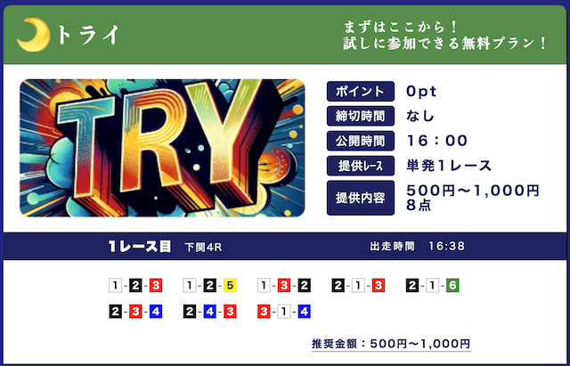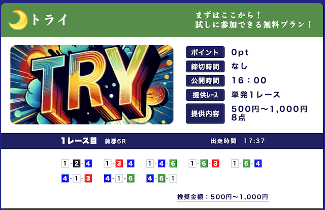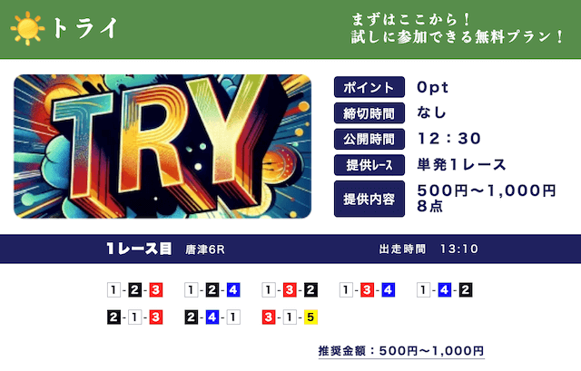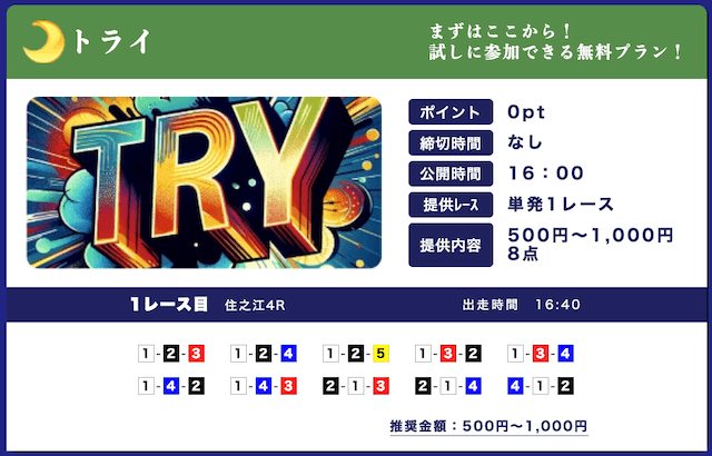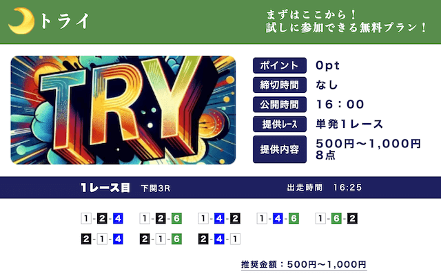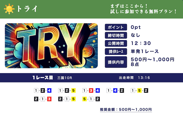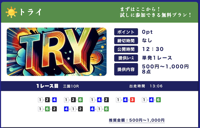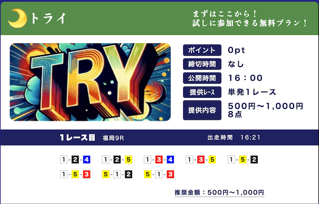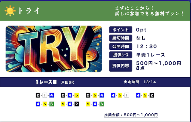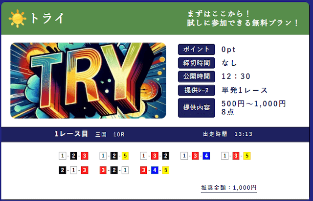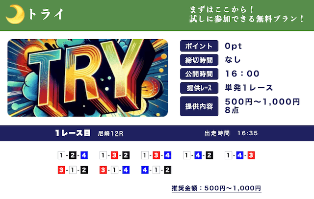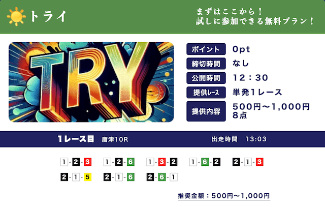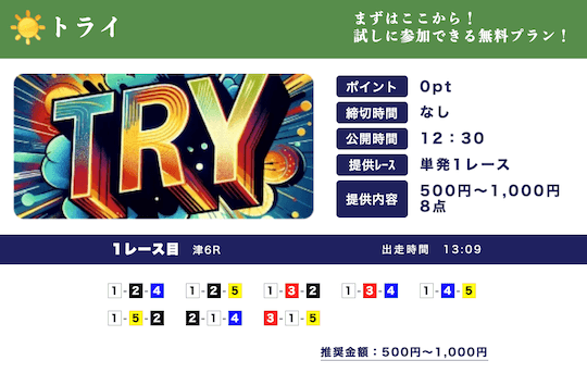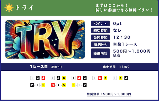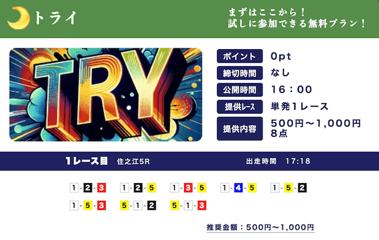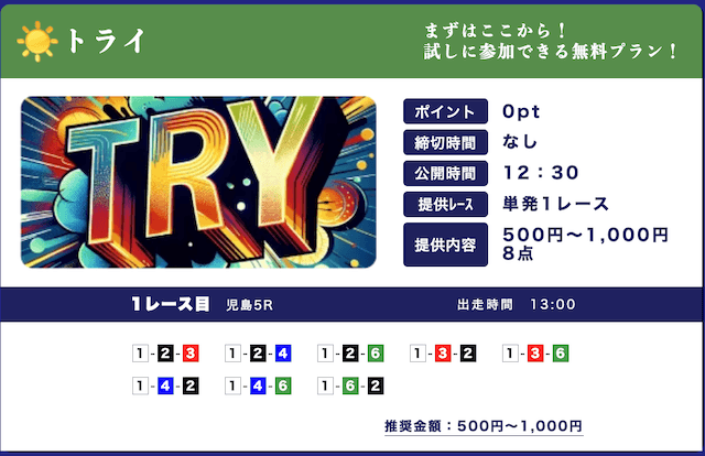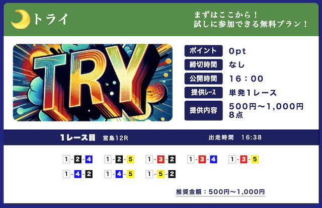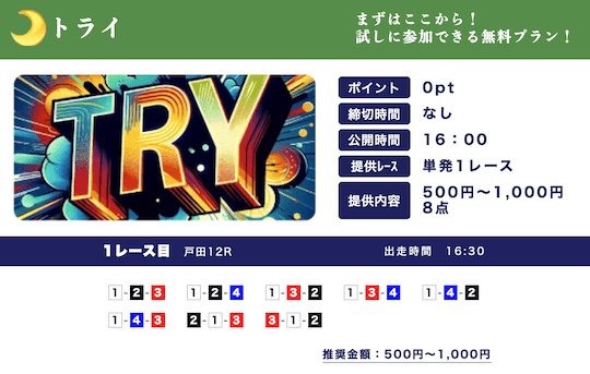 ★★★★☆ 4.02025/03/01高配当狙える無料予想が1日2レースも公開されてるのはありがたい。