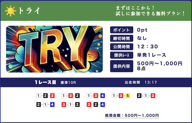 ’25/09/01 的中無料予想で13,300円獲得