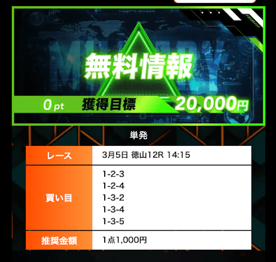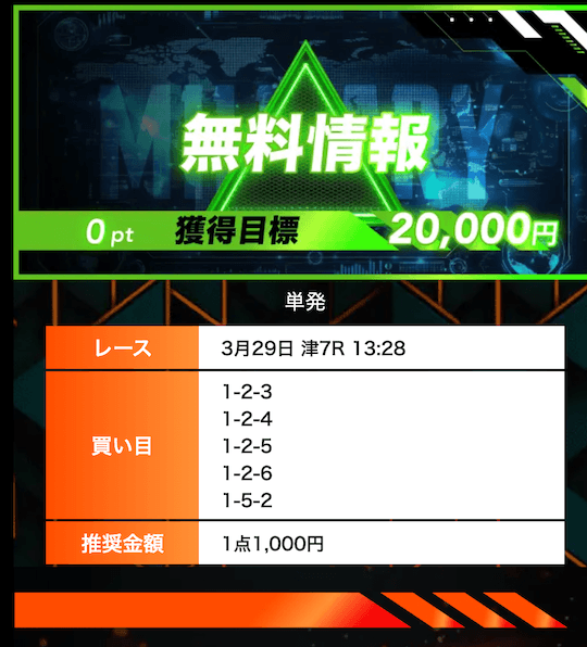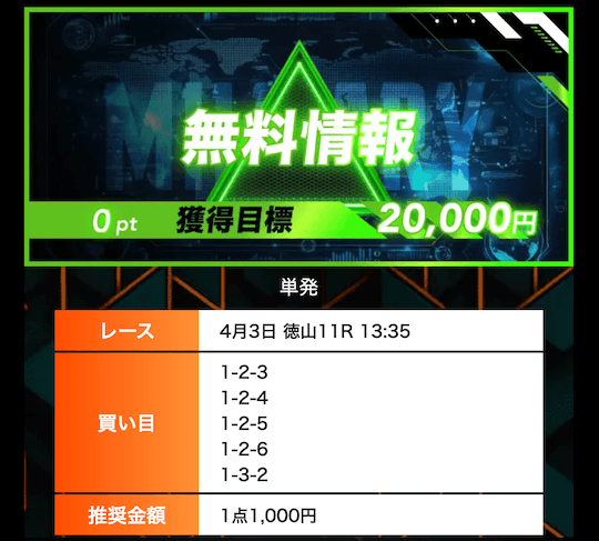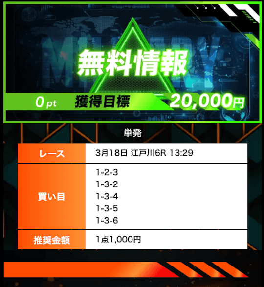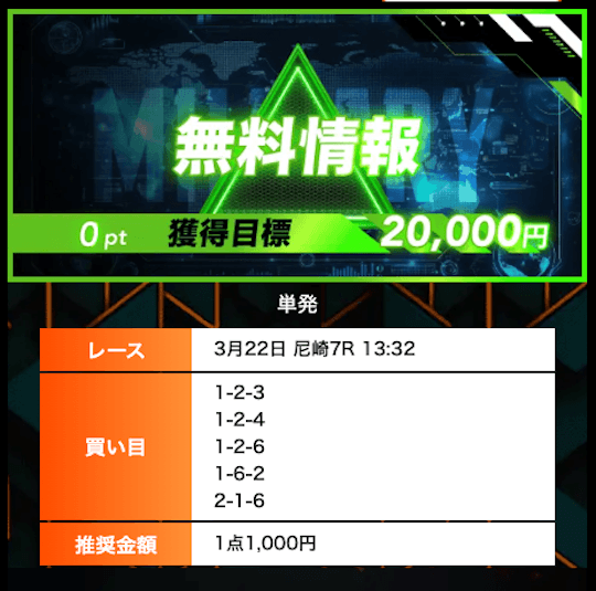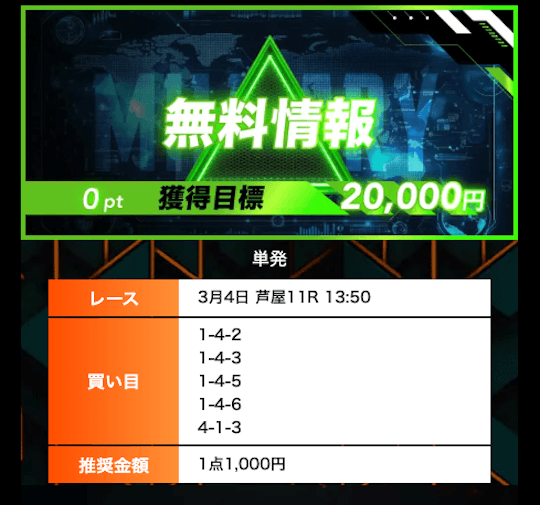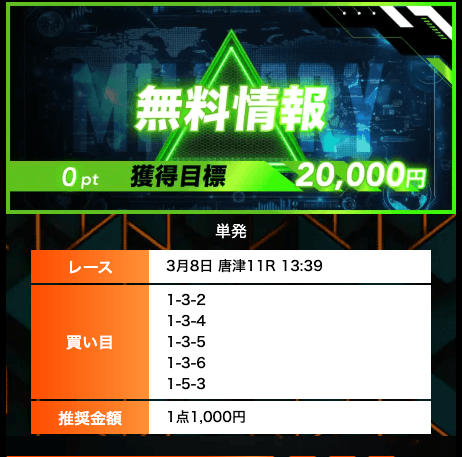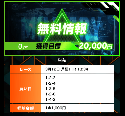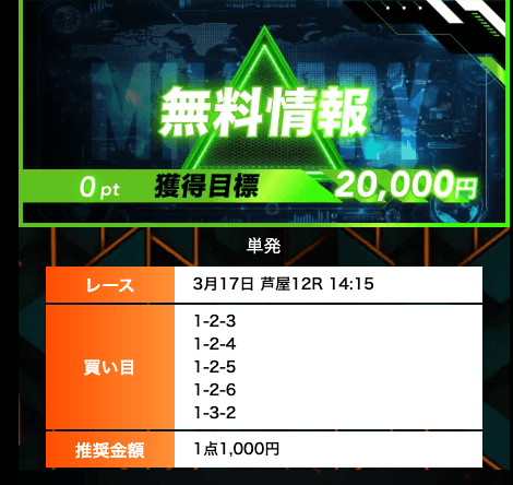 ’26/03/03 的中無料予想で6,100円獲得