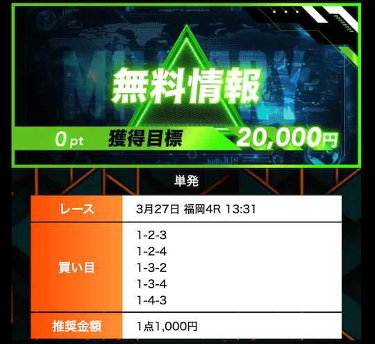 ’26/03/31 的中無料予想で18,700円獲得
