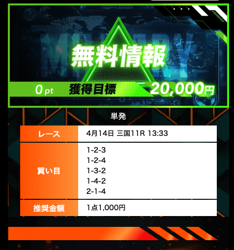 ’26/04/14 的中無料予想で26,400円獲得