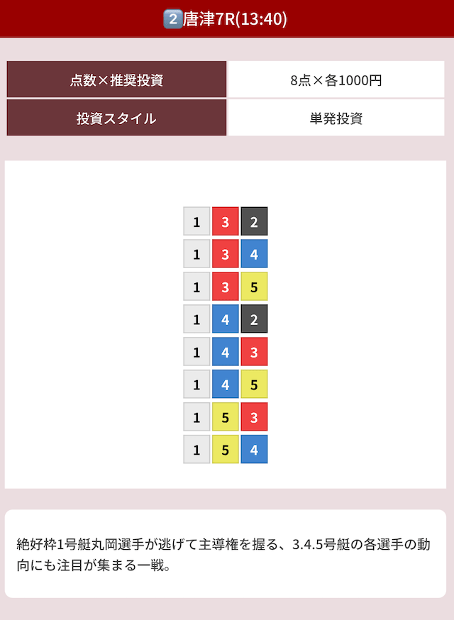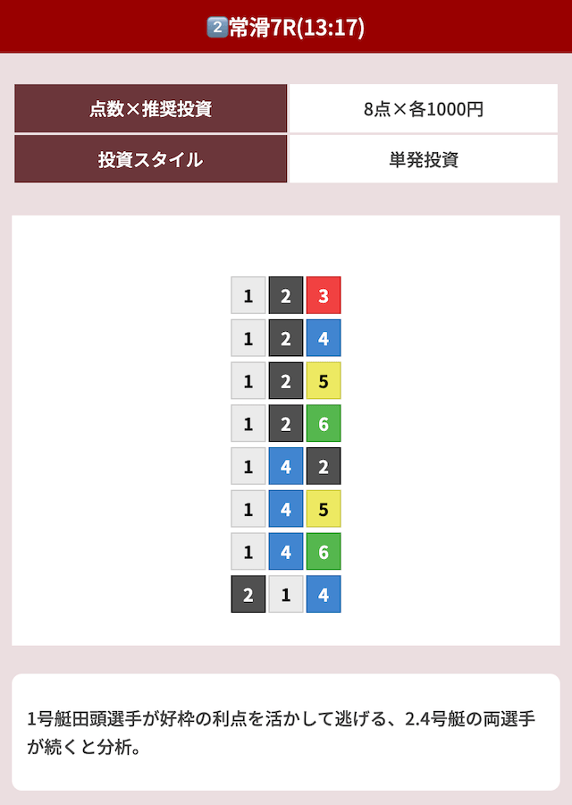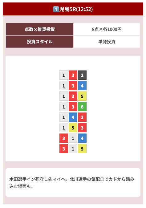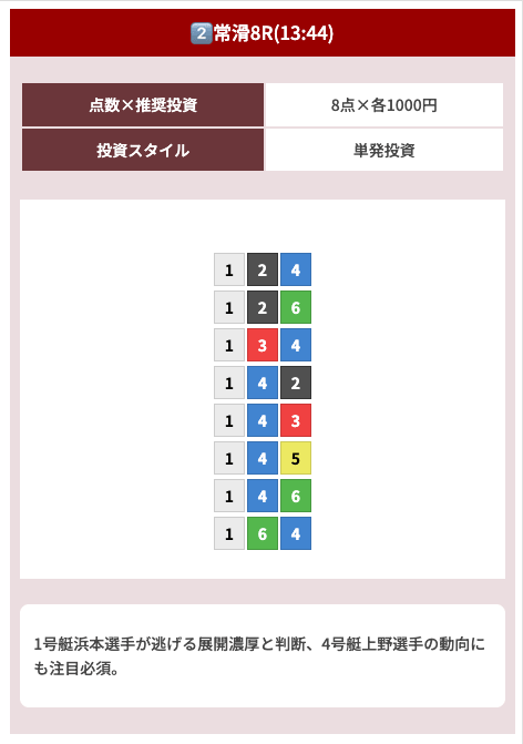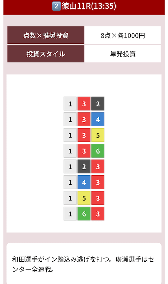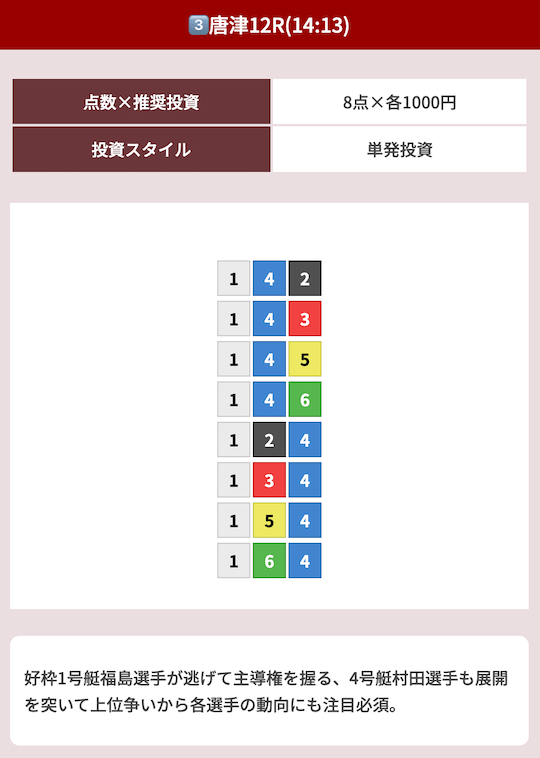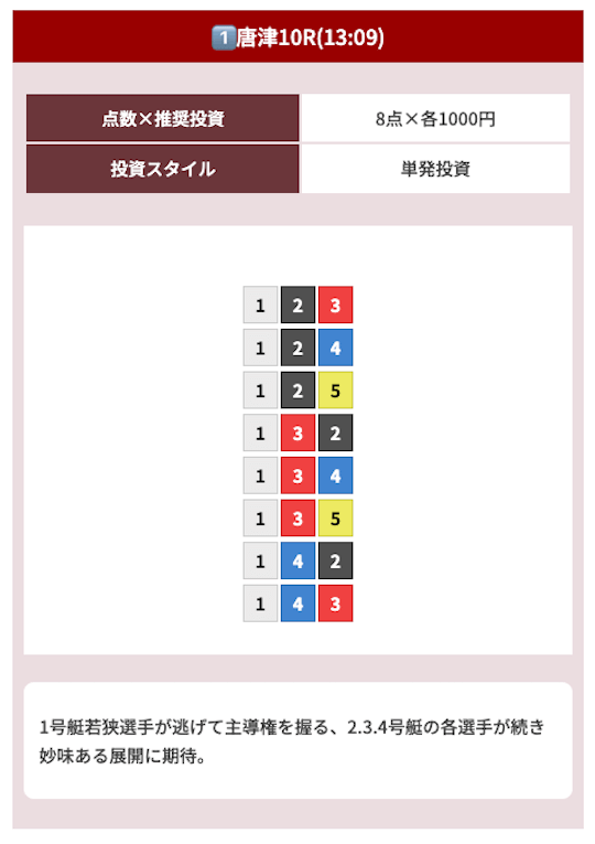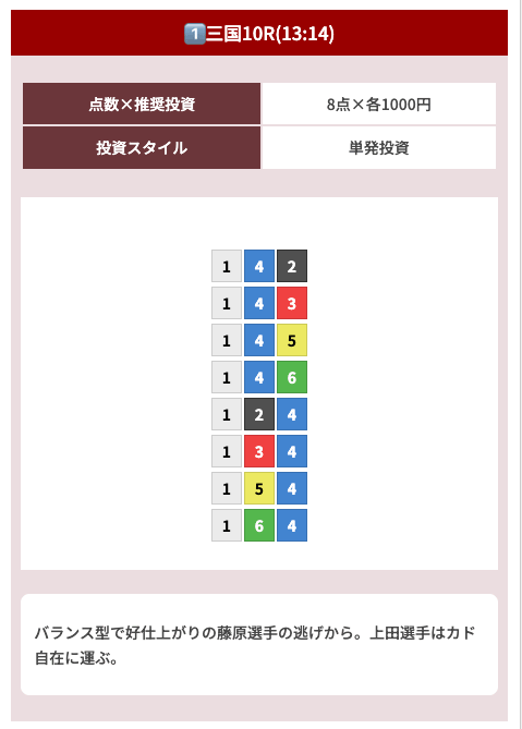 オッズ10倍前後を継続的に当てつつ、ときに30倍以上の中穴当ててくれるから非常に使いやすい!