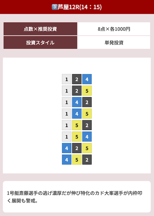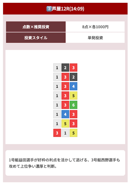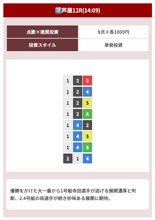 難しいことがなく、公開された買い目に丸のりするだけだから凄い簡単だったw