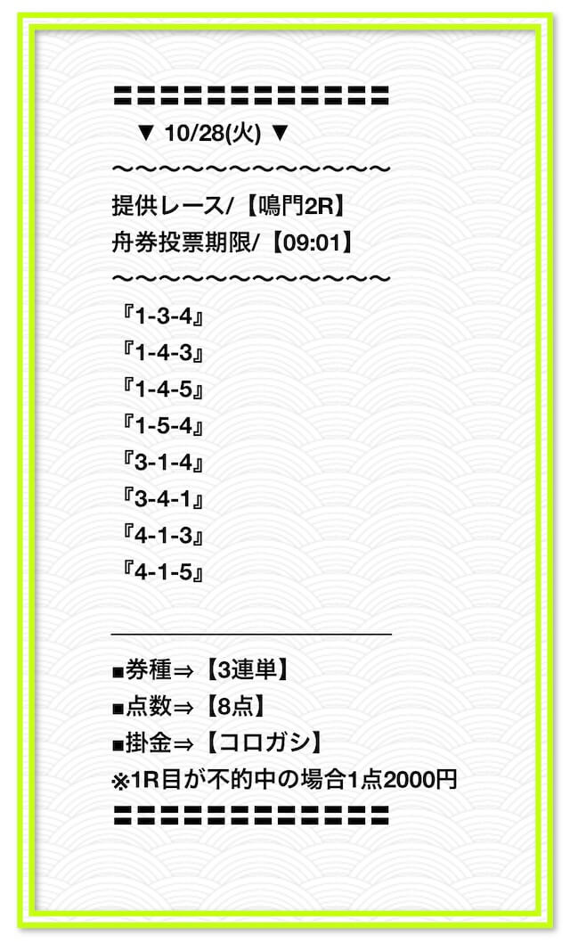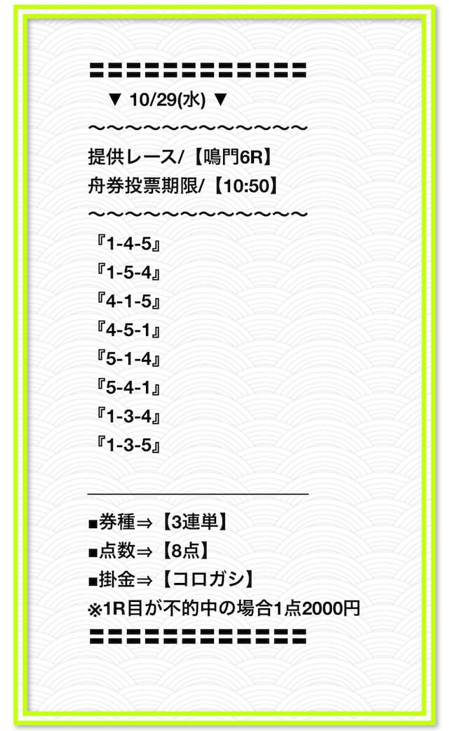 ’24/10/29 的中無料予想で8,750円獲得