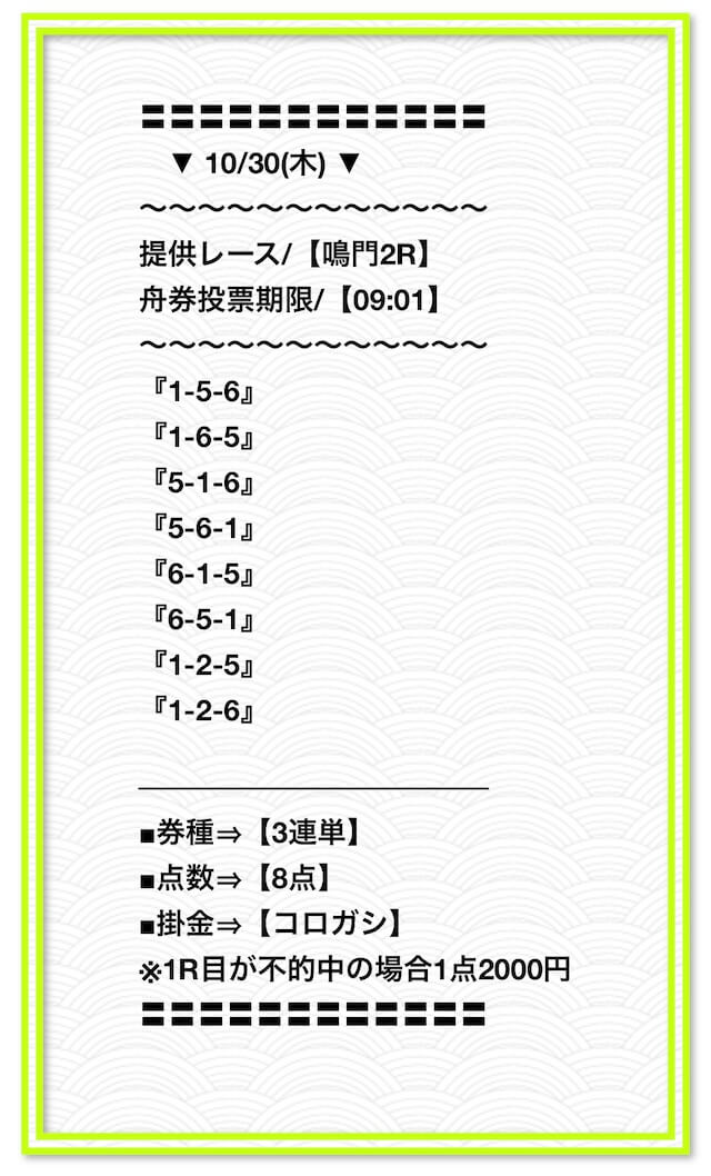 ’24/10/30 的中無料予想で31,650円獲得