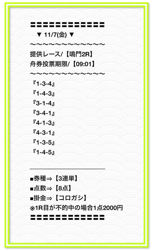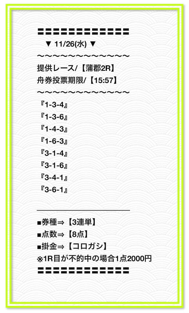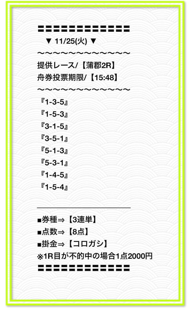 ’25/11/14 的中無料予想で23,300円獲得