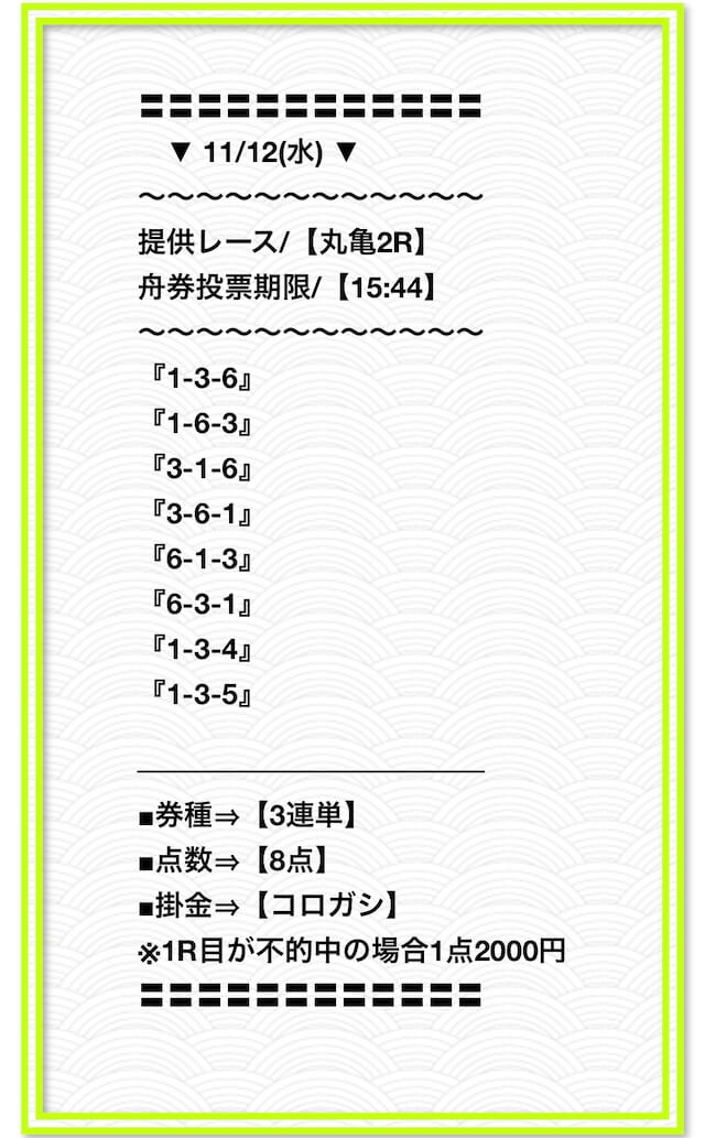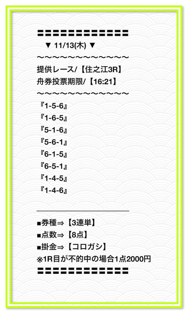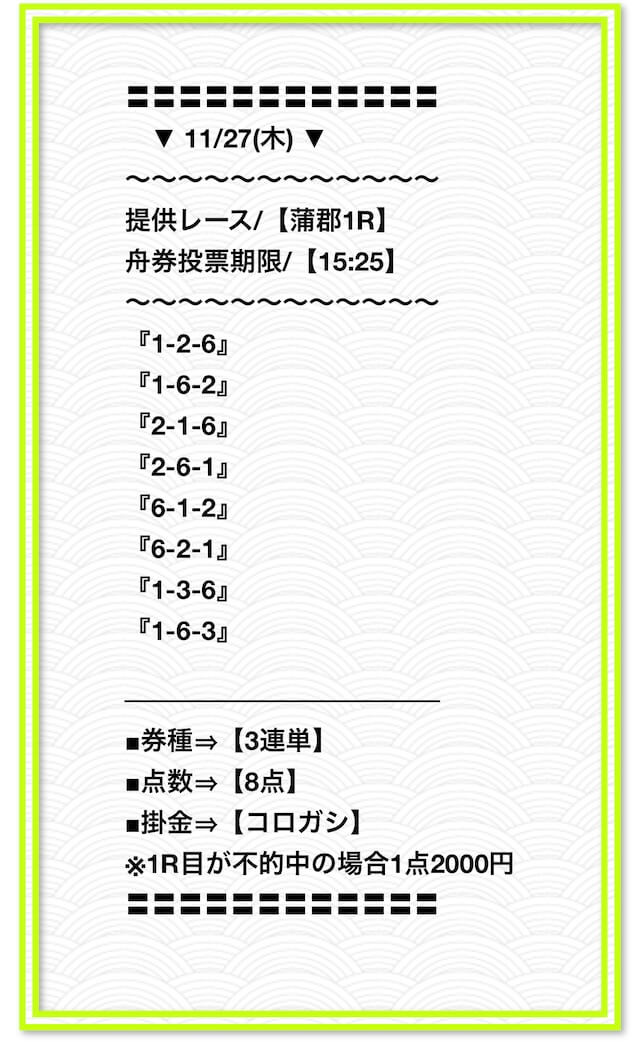 ’25/11/06 的中無料予想で27,700円獲得