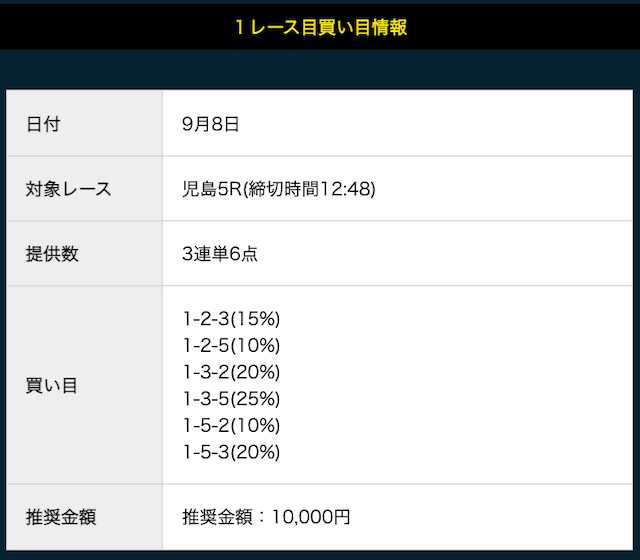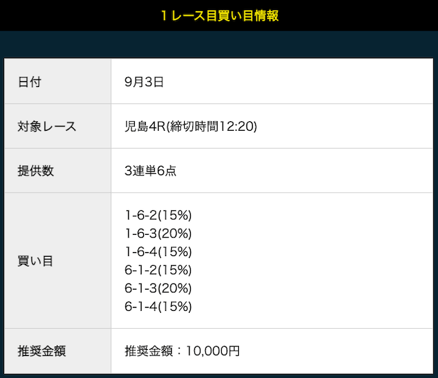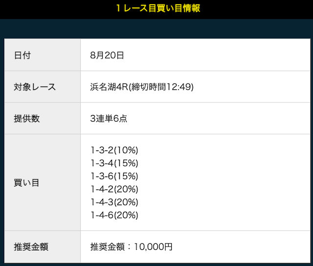 有料プラン3回試したが、1回的中しましたが、ガミ、マイナスと言う結果に…後2回は大外れ、かすりもしなかった!プラン料金50000円と舟券代80000円計130000円負け!私的には低評価ですね!コロガシどころか1レース目でハズレてほぼ終わり…..!自分予想の方が当たります(笑)