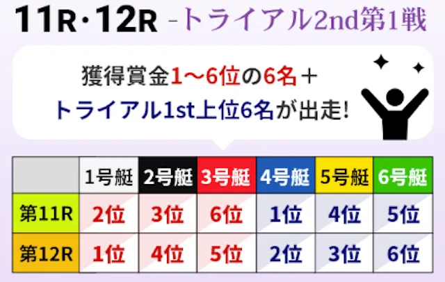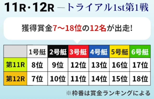 賞金ランキング上位6位は、トライアル2ndからの出場となるので優勝戦に進出しやすくなっています。
