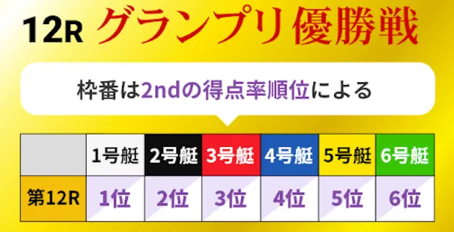 ボートレースグランプリは11Rと12Rの出走となるので間違えないようにしましょう。