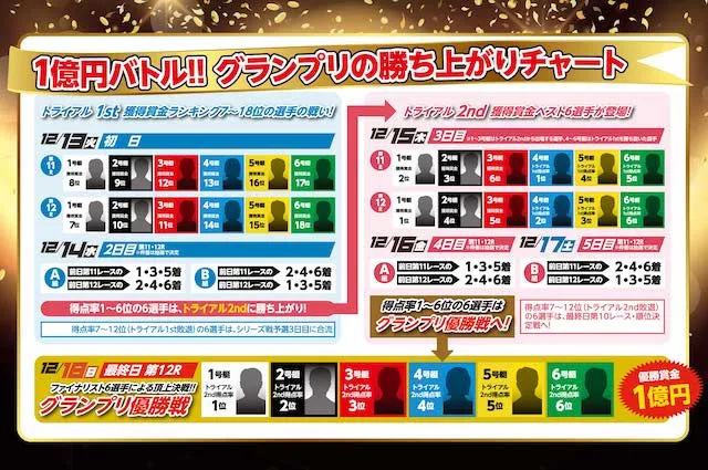 一方、ボートレースグランプリは、トライアル1st→トライアル2nd→優勝戦の順でレースが開催。
