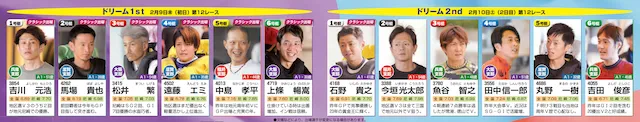 1日目と2日目の12Rに、前開催、直近で結果を残している6人ずつが出場できるドリーム戦が開催。