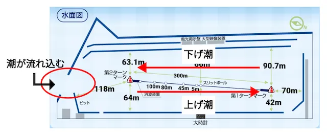 このように、コース別での有利不利が生じるので開催期間中の潮見表はチェック必須。