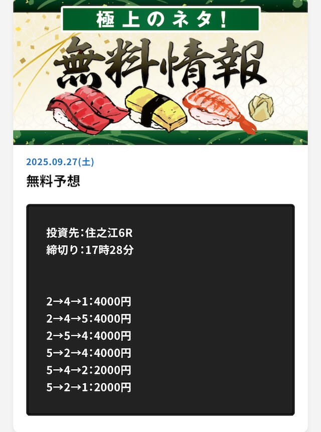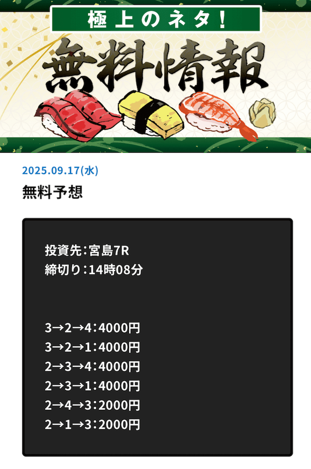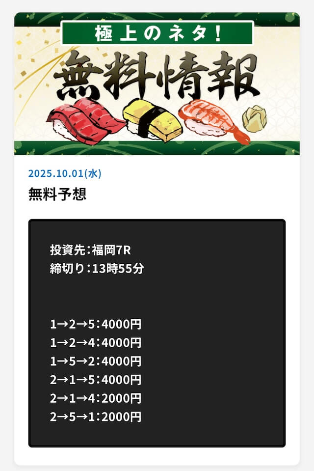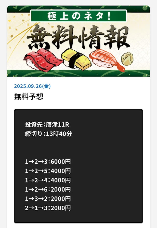 5日、6日の連チャンに続きまた的中助かります - ★★★★★ 5.0