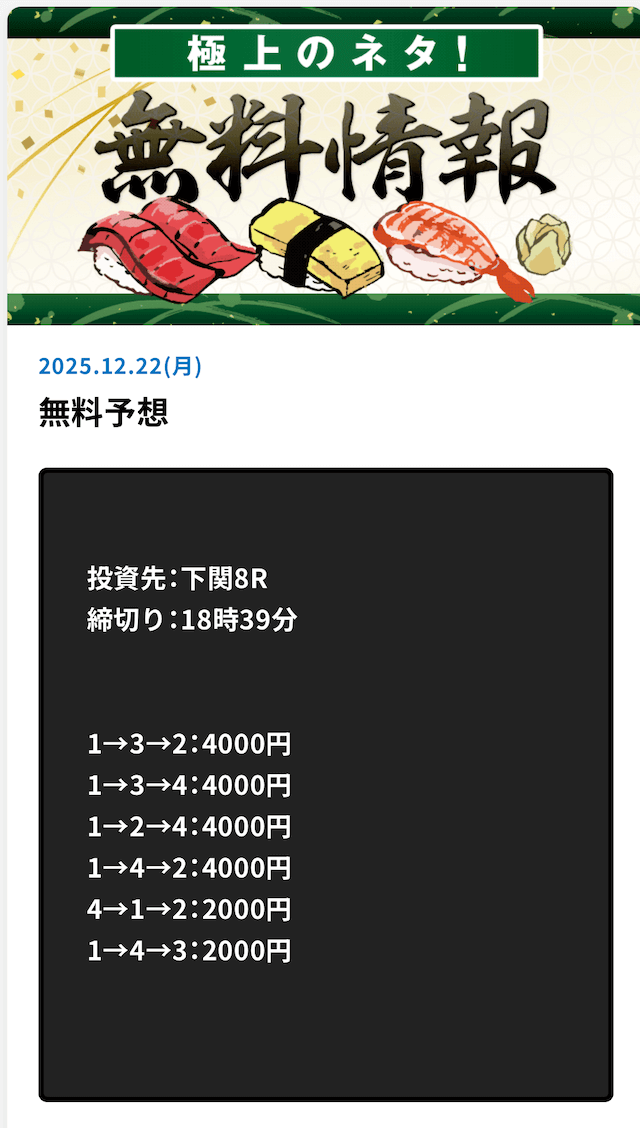 ’25/12/22 的中無料予想で35,200円獲得