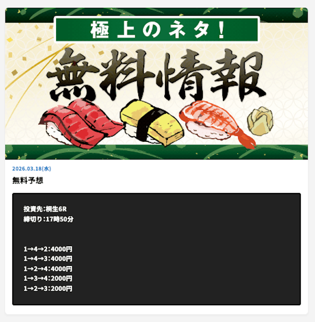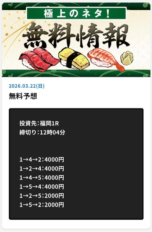 ’26/03/05 的中無料予想で50,000円獲得