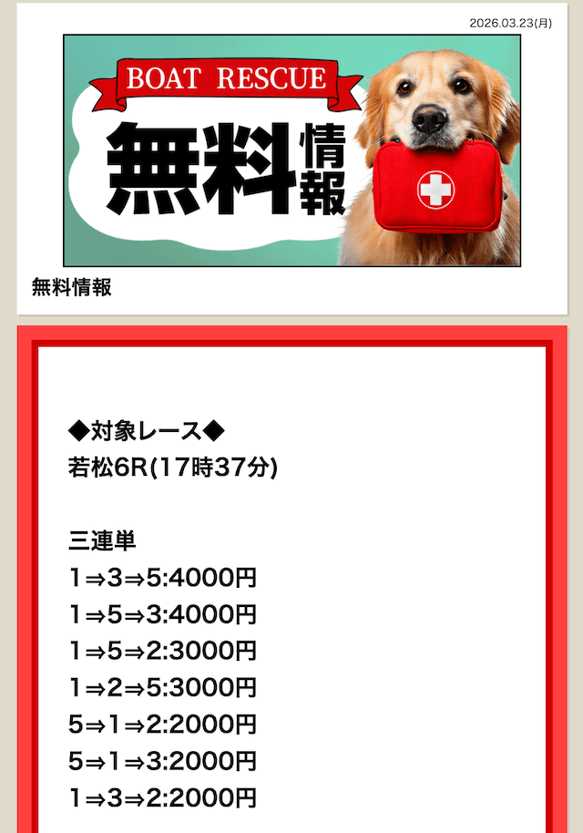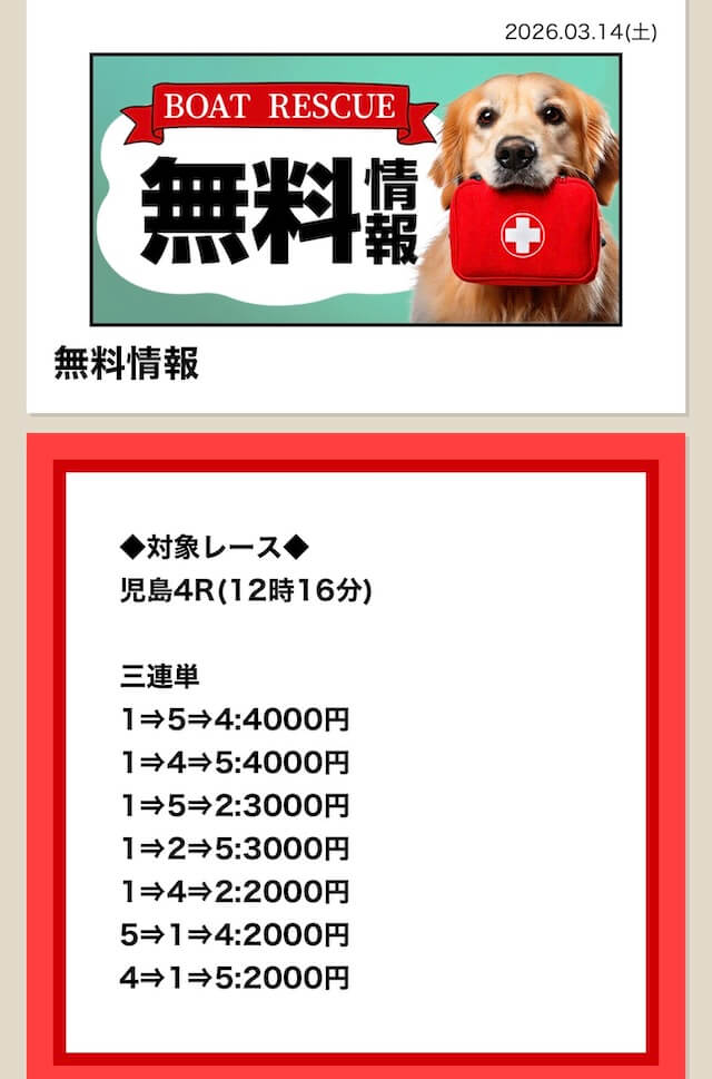 ’26/03/08 的中無料予想で48,000円獲得